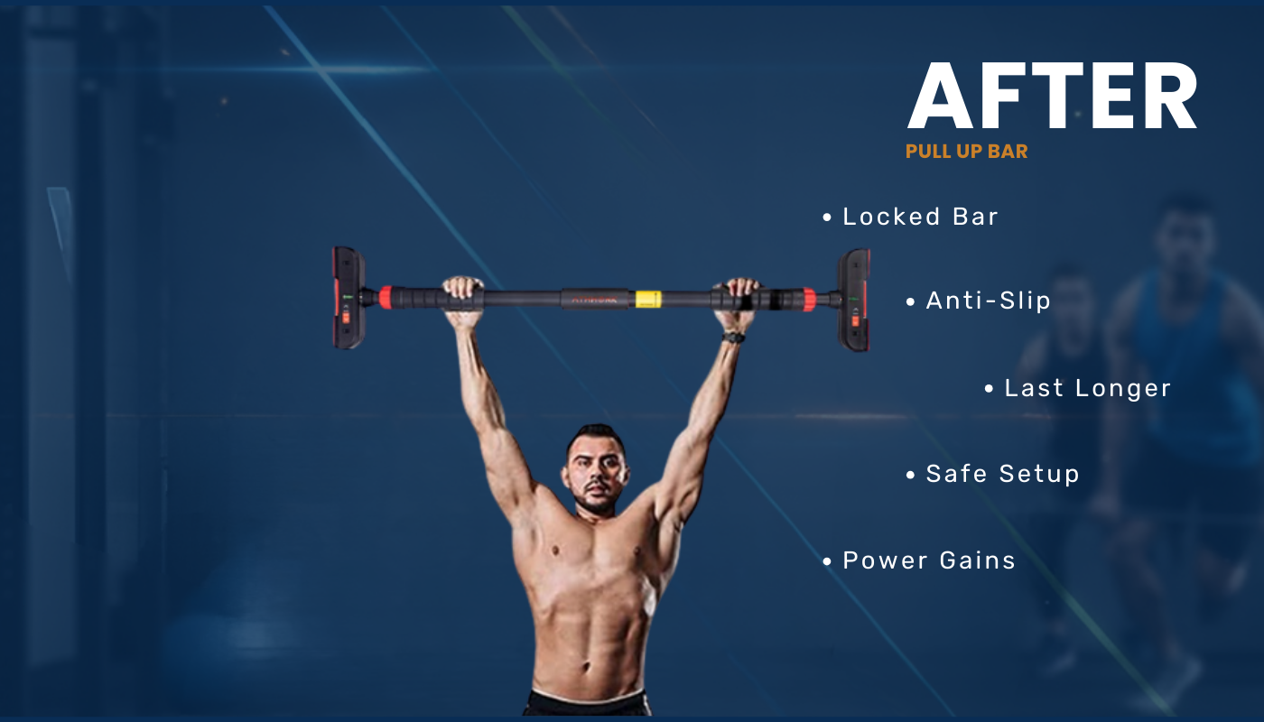Transform any doorway into a complete home gym with this door pull up bar. Its adjustable design fits door frames from 75 to 110 cm, making it ideal for apartments or small spaces. The no screw installation allows quick setup without damaging doors. This pull up bar is perfect as a best pull up bar for home workout or for kids aiming for height increase exercises. Enjoy safe, high-quality pull ups with its durable and stable design.