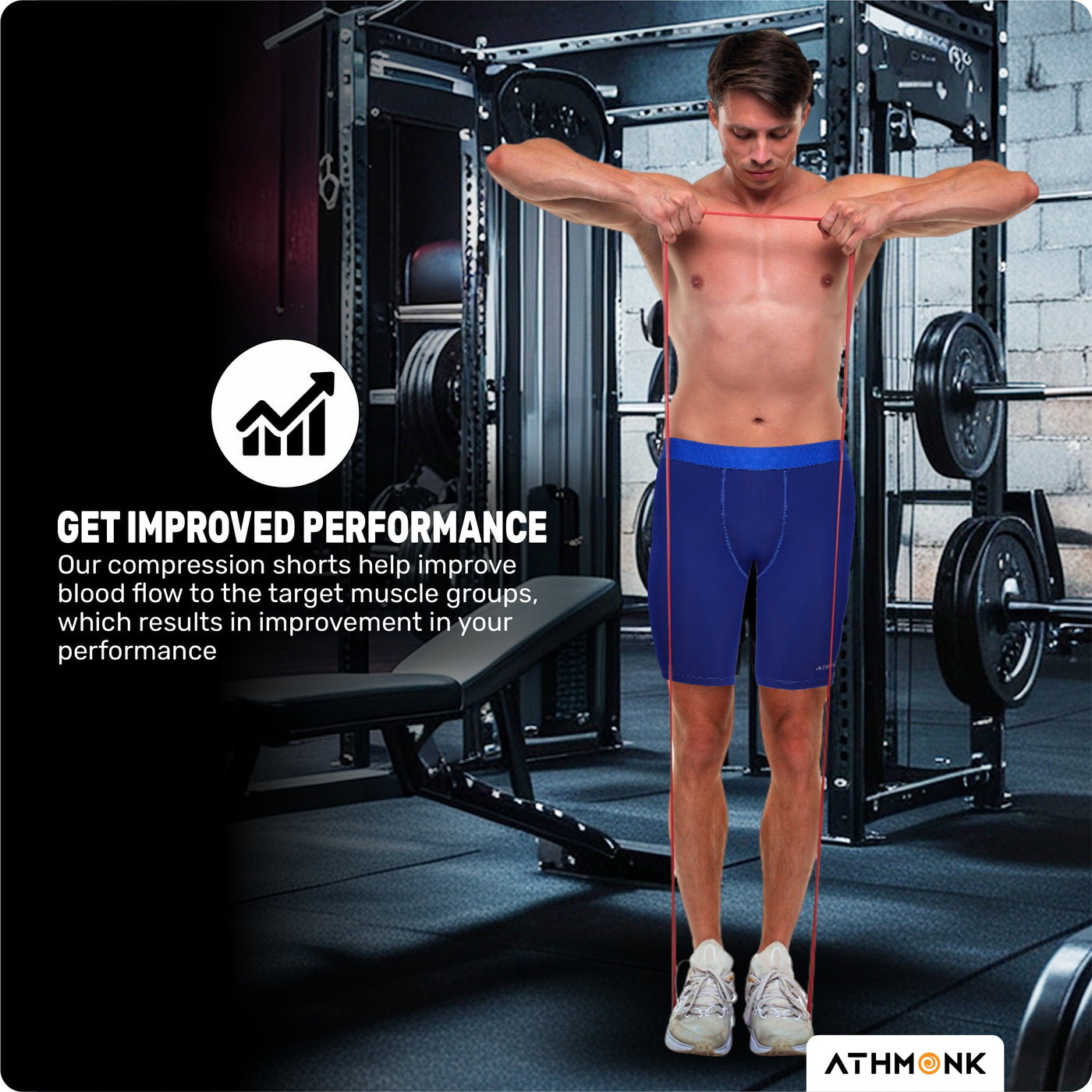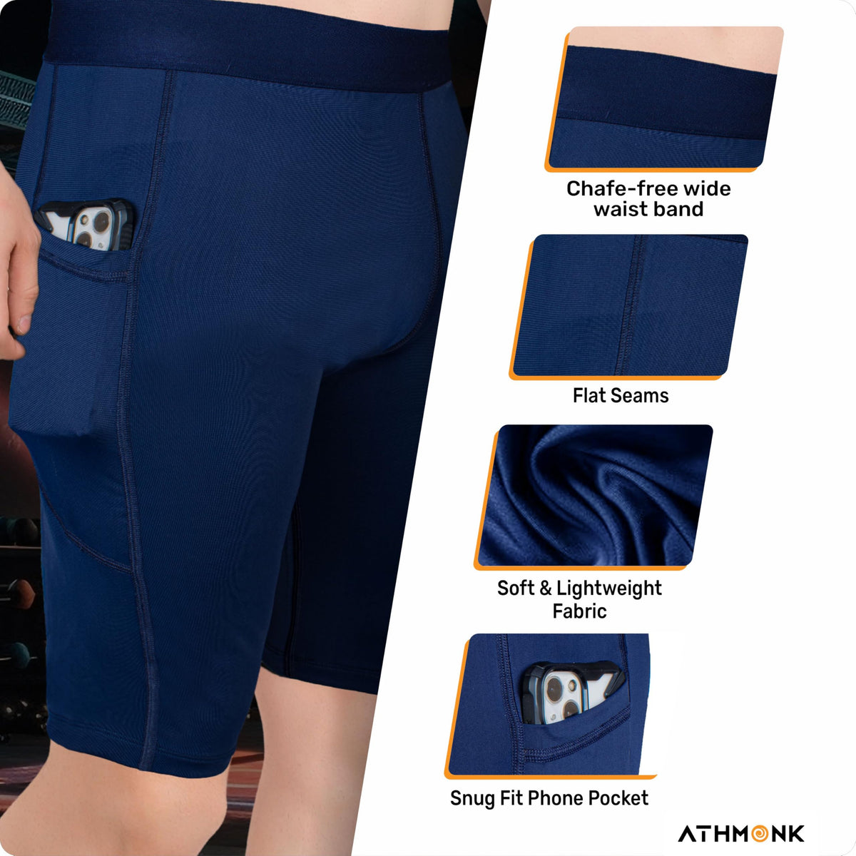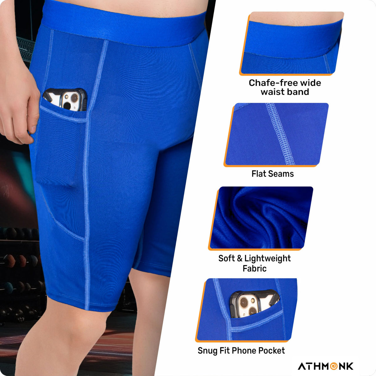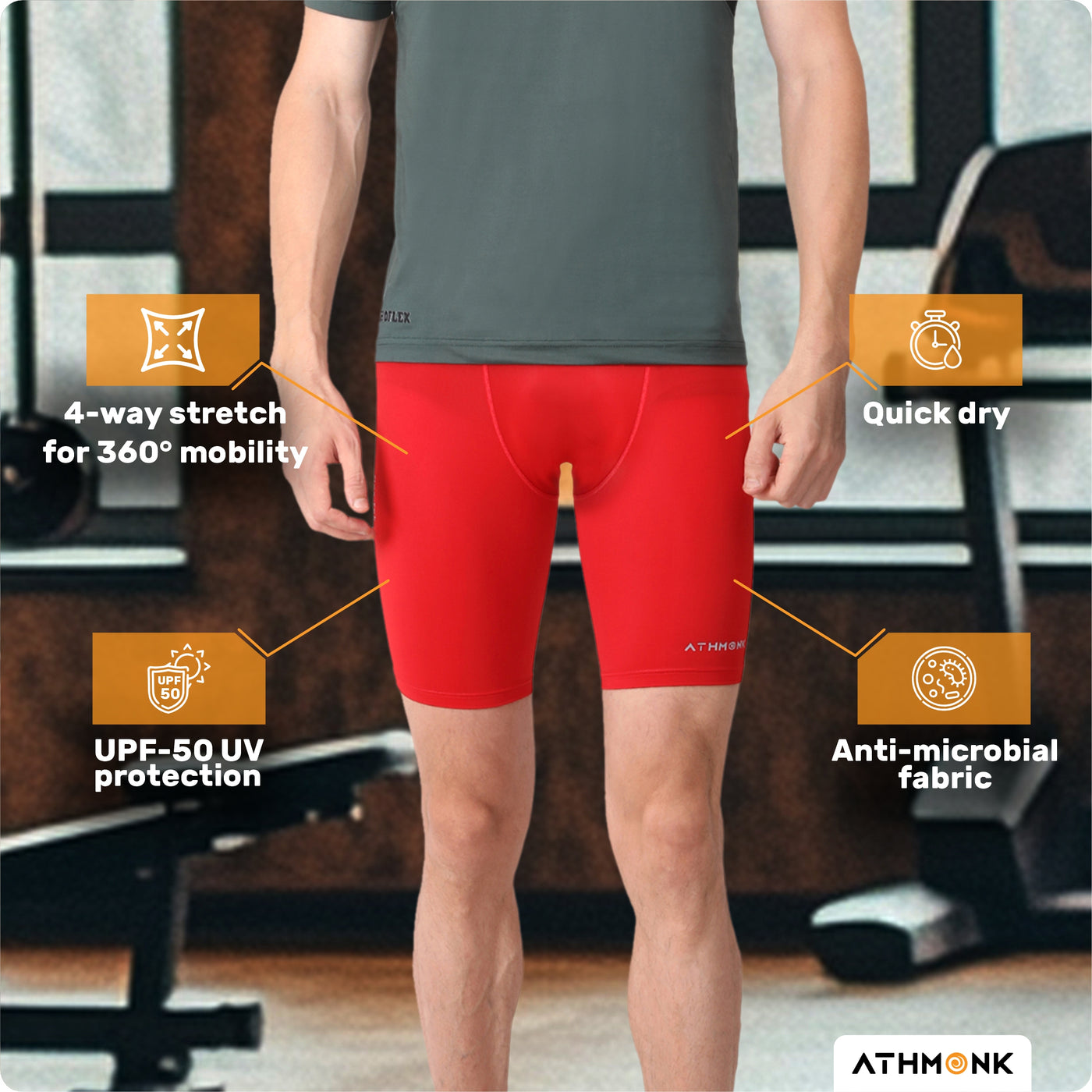 Athmonk 4-Way Lycra Compression Shorts for Men with Phone Pocket | Skin Fit, Non Padded | Cycling Running Workout Gym Cricket Football Sports | Recovery Muscle Support Quick Dry Anti-Chafe - Red / L