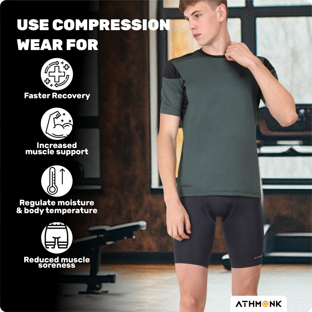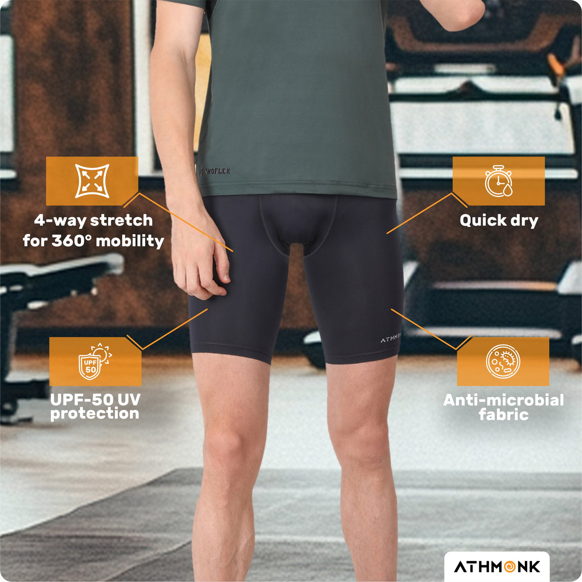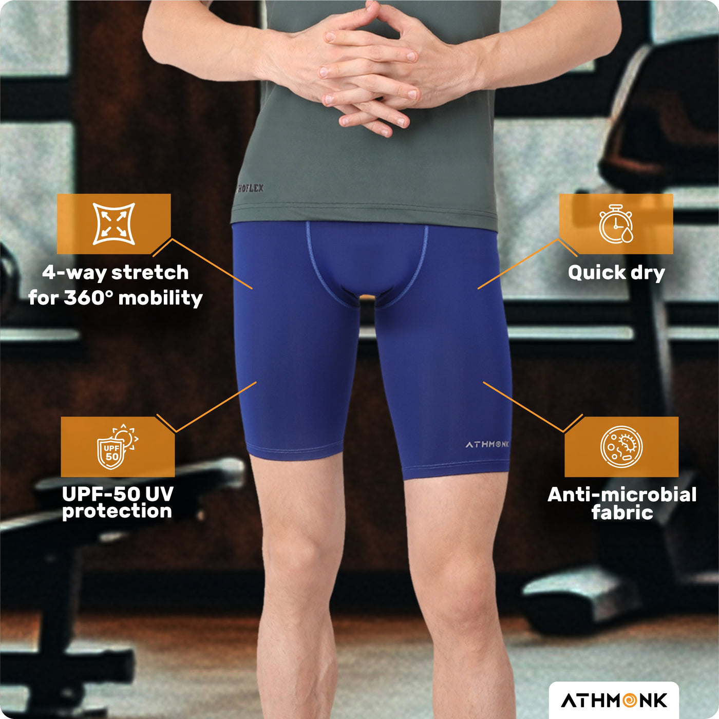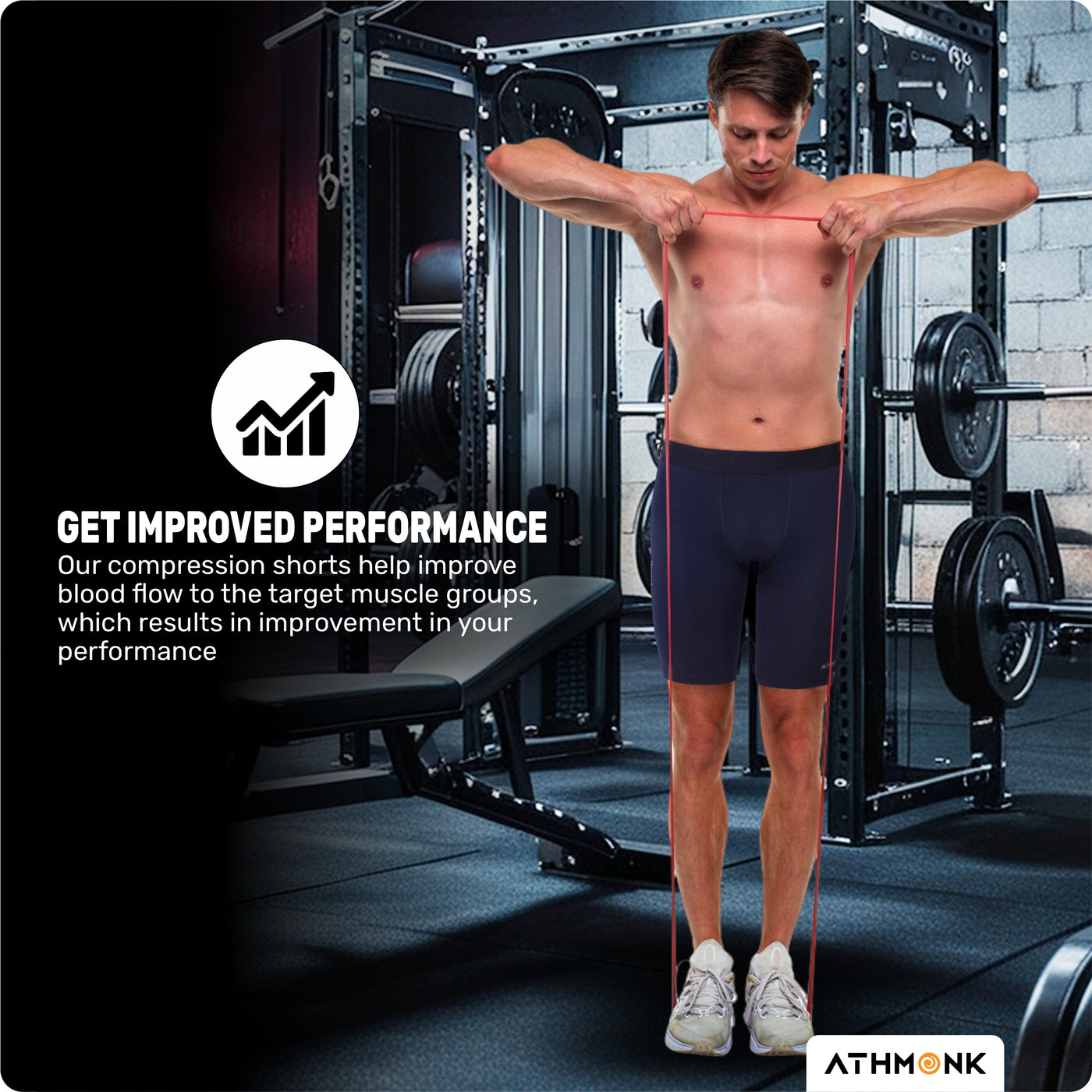 Athmonk 4-Way Lycra Compression Shorts for Men with Phone Pocket | Skin Fit, Non Padded | Cycling Running Workout Gym Cricket Football Sports | Recovery Muscle Support Quick Dry Anti-Chafe - Red / L