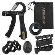 Athmonk Hand Gripper Kit - Hand Exercise Physiotherapy Equipments - Finger Strengthener & Stretcher - Stress Buster Gripper Ball - Adjustable Hand Gripper - Hand Grip Donut Ring - 5 Pcs Set